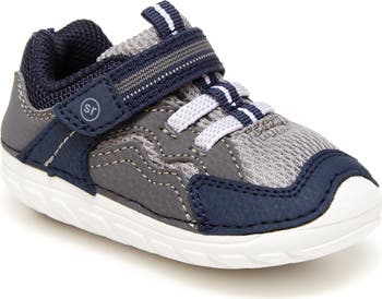 A color-blocked sneaker makes first steps confident and comfy with molded soles that are flexible and grippy to encourage natural movement.
