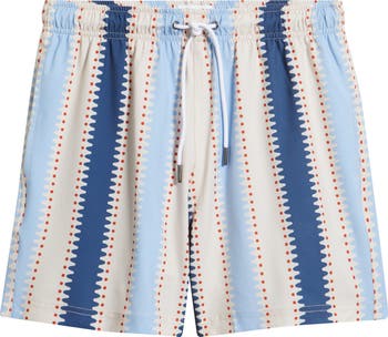 Matchstick-inspired stripes and dots pattern these lightweight swim trunks made from quick-dry fabric with four-way stretch.