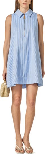 Make a preppy, modern statement in this mini-length shift dress featuring crisp stripes and a zip detail.