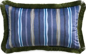 Lush velvet elevates the crisp stripe pattern of this pillow that takes glam to the next level with a lustrous fringed frame.