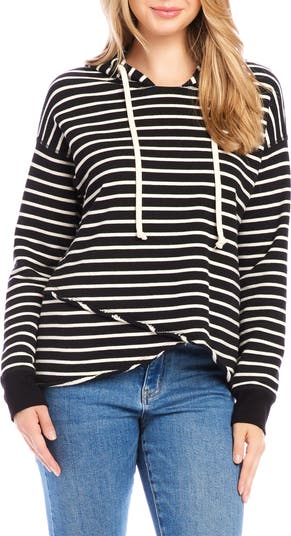 Upgrade your off-duty wardrobe with this sporty striped hoodie made from an ultrasoft French terry and detailed with an asymmetric raw-edge hem.