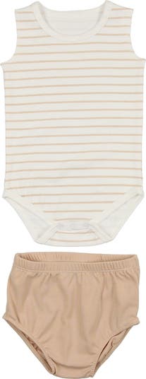 When temperatures go up, keep them cool in this sleeveless bodysuit and bloomers set cut from a lightweight cotton blend.