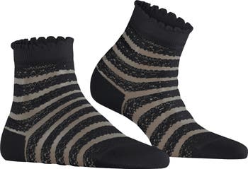 Vintage-inspired lace and crochet-knit stripes give these ankle socks romantic texture trimmed with playful lettuce-edge cuffs.