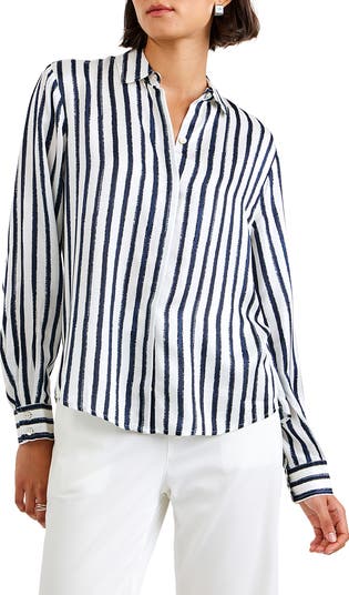 Brushstroked stripes lighten the look of an otherwise classic button-up cut from a silk-kissed fabric.