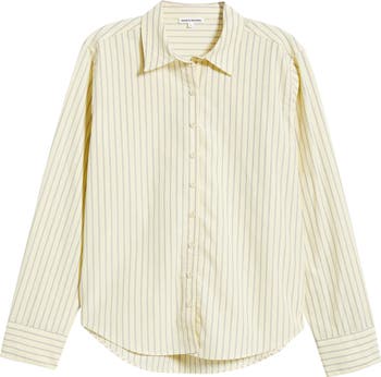 This striped cotton button-up shirt brings a crisp, easy polish to everyday dressing. A spread collar and curved hem keep the classic silhouette clean, relaxed and endlessly wearable.