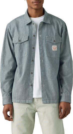 Crisp stripes keep the utility vibes high in this heavyweight cotton button-up shirt that's cut with plenty of room for layering.