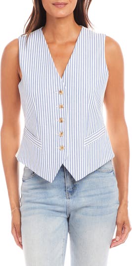 Bring a tailored finishing touch to your warm-weather look in this stretch-cotton vest secured with a row of tortoiseshell buttons for extra style points.