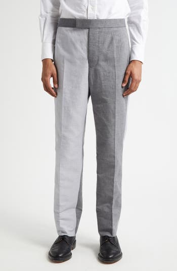 Contrasting grey hues that evoke transition and transformation distinguish these school uniform–inspired pants tailored from a linen-cotton blend perfect for warm weather. A tricolor grosgrain loop and button strap bring instantly recognizable touches.