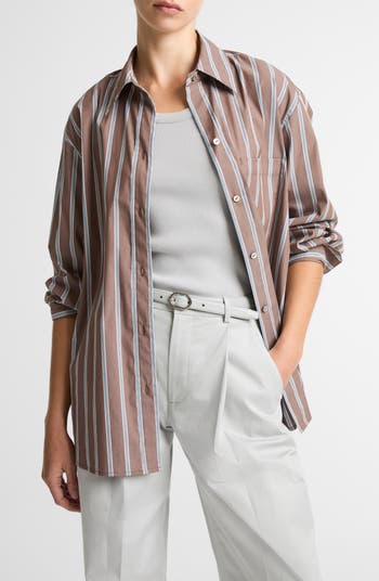 A roomy fit makes this classically striped button-up work as an outer layer or a relaxed solo player.