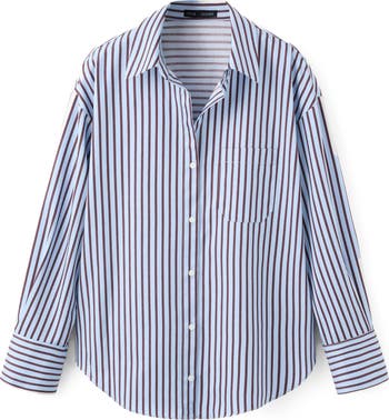 Block stripes add a jaunty touch to a crisp cotton-blend shirt offered with a handy chest pocket.