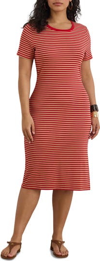 Keep the vibes casual as you stroll through your day in this softly ribbed T-shirt dress made of a breezy cotton blend and detailed with a side slit.