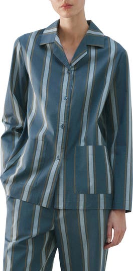 Stripe Cotton Button-Up Pajama Shirt