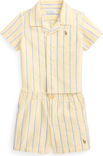 They'll be feeling cute and cool in this breathable cotton set featuring a button-up shirt paired with coordinating shorts.