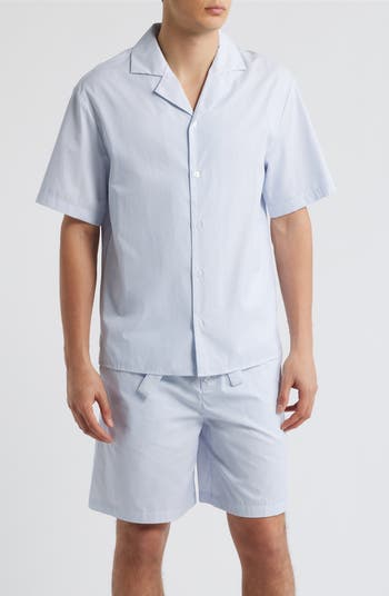 Thin pinstripes elevate a classic camp shirt made from a breathable cotton blend so it keeps you comfortable both day and night.