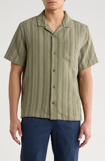 Textured stripes run up and down an all-cotton camp shirt that takes you from sunny days to relaxing evenings in effortless comfort. Wear it on its own or layered and unbuttoned to change up your look without losing your style.