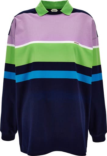 This boldly striped polo made in Italy from compact cotton jersey is cut in a relaxed fit with dropped shoulders and features a crewneck inset with a contrast rib collar for a sporty look.