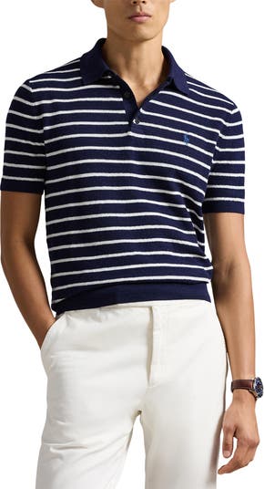 Stripe Cotton & Linen Polo Sweater