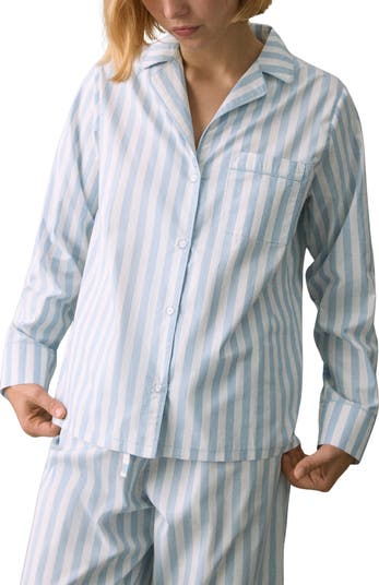 Cozy up in these soft, breathable cotton pajamas patterned in perky stripes and framed with tonal piping.