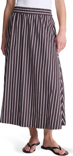 Created from 100% midweight cotton poplin, this A-line midi skirt features contrasting satin stripes, an easy pull-on elasticized waist and on-seam side pockets.