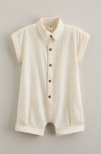 Your sweet babe will be picture-perfect in a collared romper softly striped and made from cool cotton.