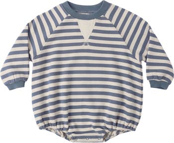 Made of ultrasoft French terry, this bubble romper features comfy raglan sleeves and convenient snaps between the legs that make diaper changes a breeze.