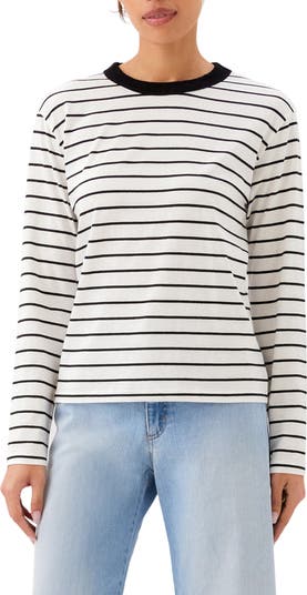Stripe Crewneck Long Sleeve Cotton Top