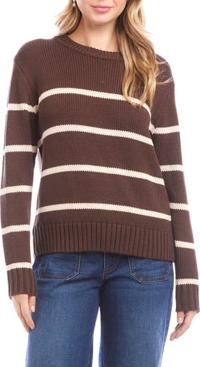 Dropped shoulders further the slouchy oversized fit on this longline cotton-enriched sweater encircled in lively stripes.