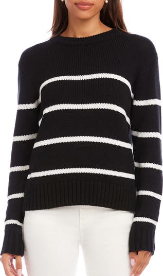 Cozy ribbed trim frames this slouchy relaxed-fit sweater knit from soft, cotton-enriched yarns and encircled in lively stripes.