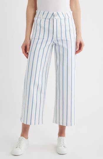 Linked stripes add vintage-inspired charm to these cotton-blend pants made with a superhigh waist, cropped wide legs and roomy patch pockets.