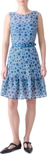 Stripe Dot Belted Seersucker Dress
