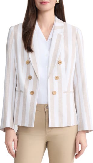 Stripe Double Breasted Linen Blend Blazer