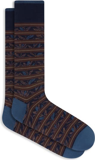 Stripe & Floral Mercerized Cotton Blend Dress Socks