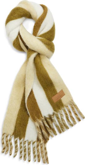 Feathery fringe adds a classic finishing touch to this cozy striped scarf woven with sumptuous mohair, alpaca and virgin wool fibers.
