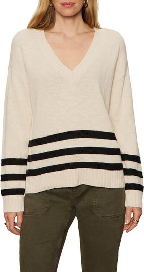 Knit from lightweight cotton-slub yarns, this V-neck sweater features raised stitching and rib trim at the hem for a bit of visual interest.