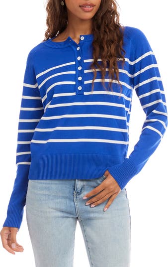 This maritime-striped sweater is a timeless essential designed for everyday wear. Imagined in a soft rib-trim knit that offers stretch and texture, it features a classic crew neckline, long raglan sleeves and a six-button placket for versatile styling.