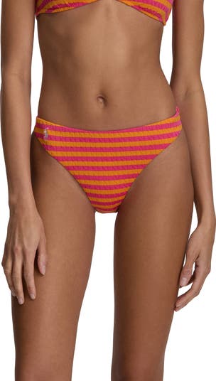 The combination of bold stripes and chain-inspired jacquard pattern give heritage-inspired flair to these classic bikini bottoms.