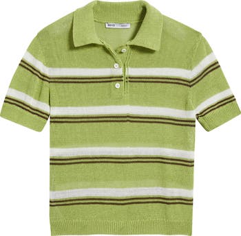 Cotton-enriched jersey brings soft structure to this striped, retro-inspired polo sweater designed in a streamlined fit.