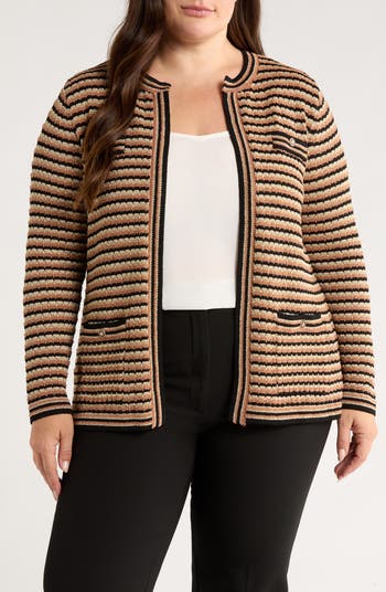 A relaxed fit brings easy movement to this energetically striped cardigan knit in a longline silhouette for perfect coverage.