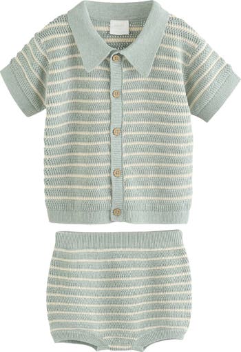 Bring a resort-ready vibe to baby's wardrobe with this knit cotton set featuring a short-sleeved cardigan and a pair of matching bloomers.