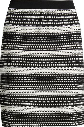 Broken stripes give a contemporary textured look to a soft knit skirt that's fashioned in a trim, straight silhouette.