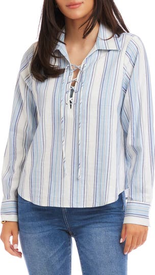 Stripe Linen Blend Lace-Up Popover Shirt