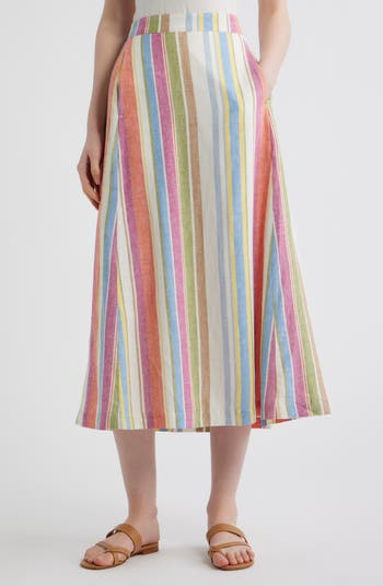 Candy colors stripe a summery skirt cut from a breezy linen blend and perfected with a pair of pockets.