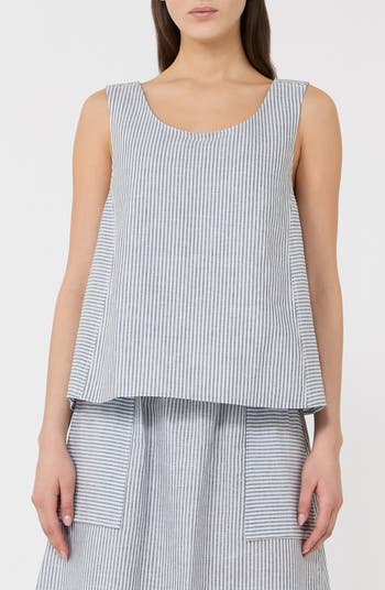 Covered in soft but lively stripes, this sunny-day tank is cut from a lightweight linen blend.