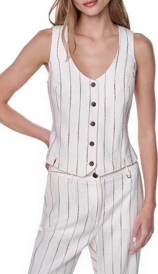 Crisp stripes further the everyday refinement of this structured vest fashioned from a lightweight linen blend.