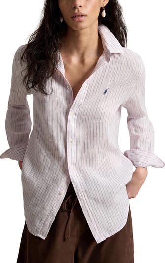 The iconic polo pony authenticates a breezy button-up slimly striped and cut from airy linen.