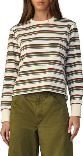 Zippy stripes wrap around a boxy, long-sleeve cotton T-shirt finished with a neat ringer neck and cuffs.