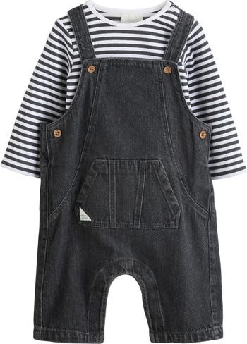 Outfit your busy baby for playdates galore in this action-ready ensemble featuring a rib-knit striped T-shirt and roomy denim overalls set.
