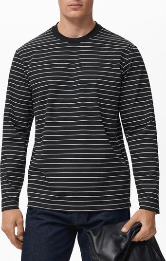 Ringed in crisp stripes, this T-shirt made in part with silky viscose features a polished finish and a fit that works layered or on its own. Pair it with practically anything when you want to add a sporty finish to a favorite casual look.