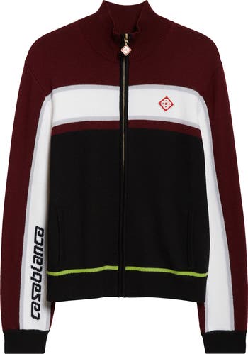 Casablanca puts a retro-eclectic twist on trad sportswear with this track-inspired jacket knit from merino wool yarn and featuring a bold stripe for a balance of athletic ease and refined style.
