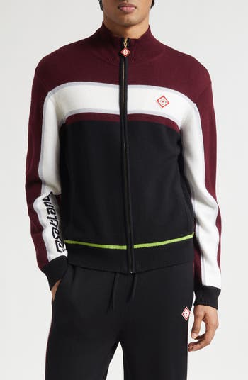 Casablanca puts a retro-eclectic twist on trad sportswear with this track-inspired jacket knit from merino wool yarn and featuring a bold stripe for a balance of athletic ease and refined style.